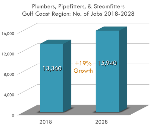 By 2028, The Gulf Coast Region expects to need over 15,000 Plumbers, Pipe-fitters, and Steamfitters.